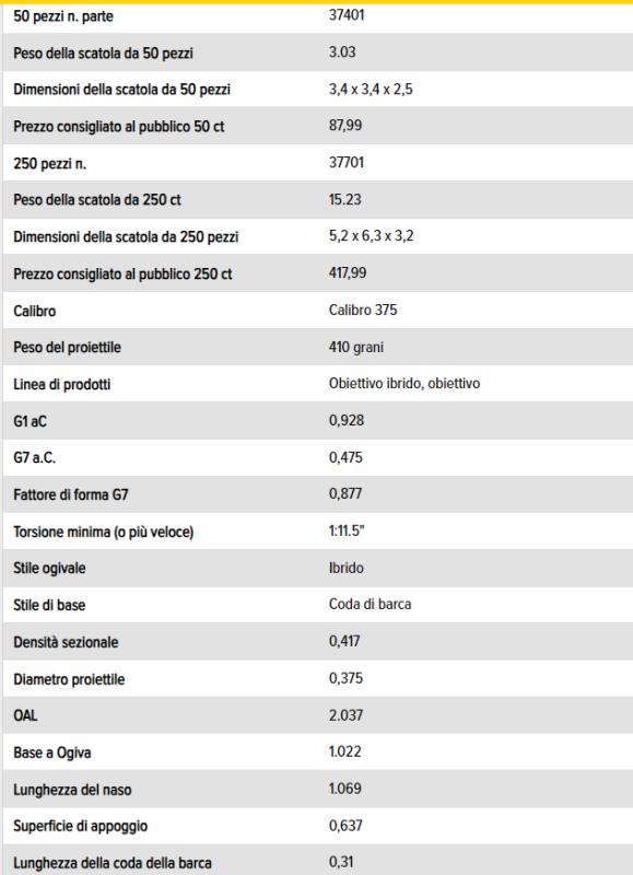Berger BULLETS 375 (.375) 410gr Hybrid Target (50 pz)