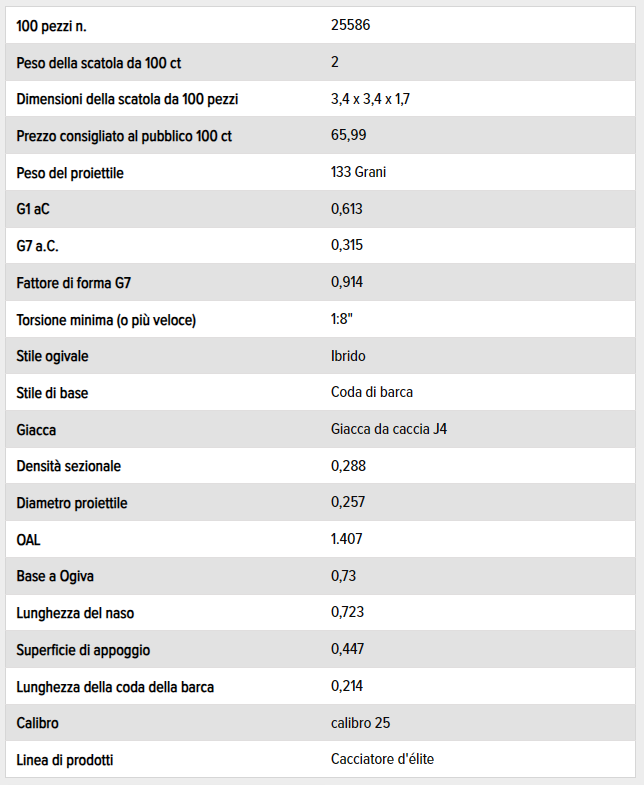 BERGER BULLET 25 133 gr. ELITE HUNTER (100PZ.)