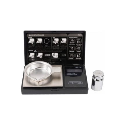 Una bilancina piccola, ma con molte caratteristiche. Peso massimo 100 grammi ( 1560 grani ) con una precisione di 0.01 grammi ( 0.1 grani ). Oltre a pesare in grammi e grani, restituisce il valore anche in carati e once, ha la funzione di conta pezzi. Schermo retroilluminato. Funziona con due batterie CR2032 non incluse nella confezione.