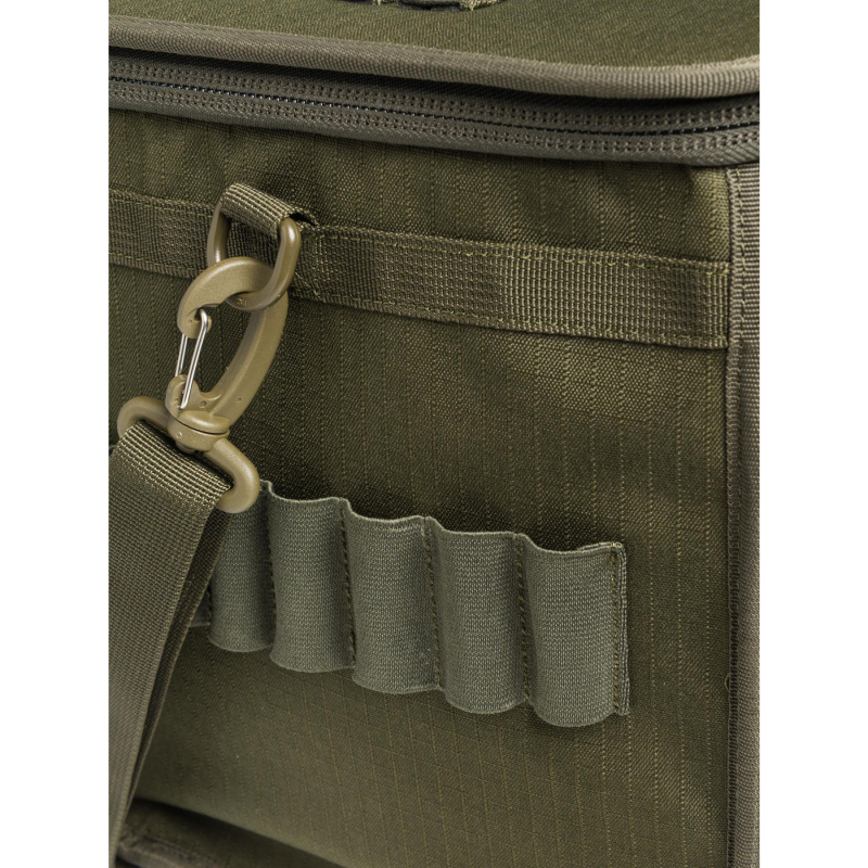 Borsa porta cartucce per contenere fino a 10 scatole da 25 cartucce con 3 tasche esterne per strozzatori, tappi e altri accessori.