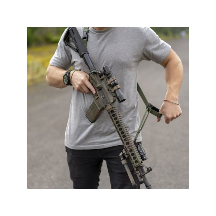 La fascia QS Sentinel a 2 punti รจ dotata di una cinghia larga 2,5 cm con un’imbottitura larga 5 cm per il supporto delle spalle. Il design elegante รจ dotato della nostra funzionalitร Quick Slide. Basta tirare in avanti per regolare la larghezza, o indietro per regolarla. Include una fibbia di sgancio di emergenza ed รจ progettata per il trasporto a 2 punti. Regolabile in base alle dimensioni e dotata di robusti snodi a pulsante.