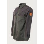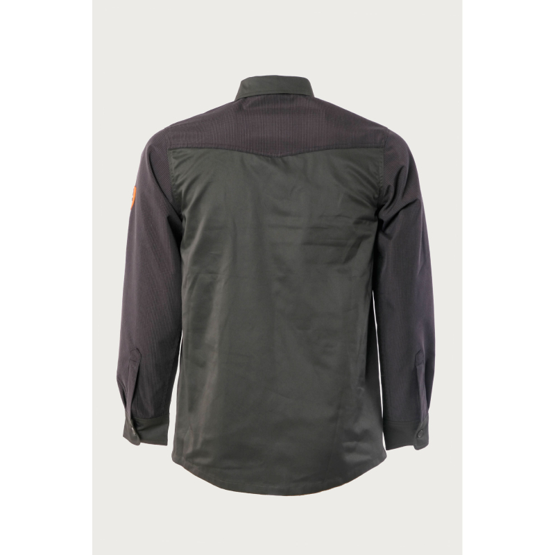 Camicia in cotone e protezioni in tessuto tecnico impermeabile e anti strappo.