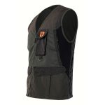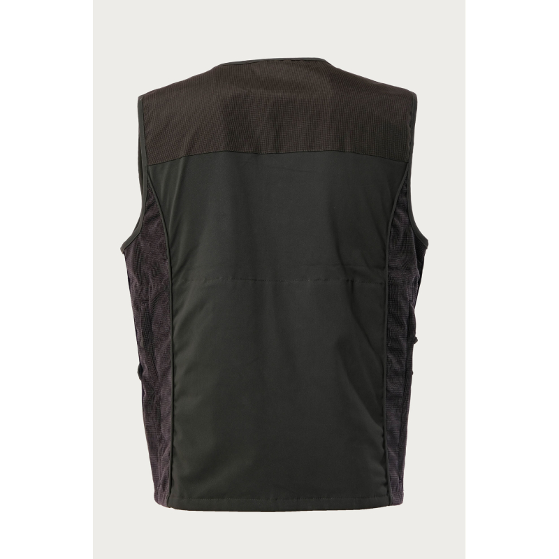 Gilet in color verde, estremamente protettivo grazie al tessuto tecnico che ricopre quasi per intero la superficie.ย Resistente ai rovi e impermeabile. Taschino porta GPS lato cuore. Tasconi frontali e tasche nascoste con apertura verticale.
