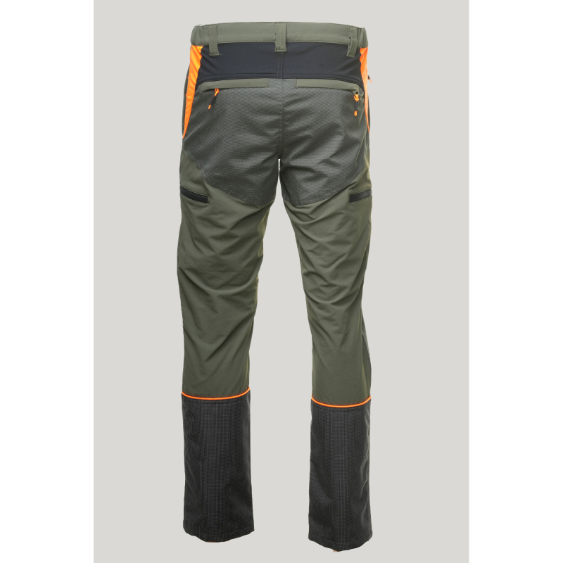 Pantalone elasticizzato con protezioni e inserti in tessuto nero. Disponibile anche nella variante con bordini ad alta visibilitร . ร dotato di rinforzi in tessuto tecnico antispino ed รจ idrorepellente nelle zone di maggiore usura: ginocchia, parte posteriore e fondo gamba. Presenta due tasche anteriori e due posteriori con chiusura a zip, oltre a due tasche laterali oblique sulle gambe, anchโesse con zip. Pratico e confortevole nei movimenti.