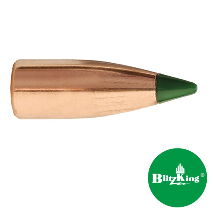 Per i fucili, questo proiettile รจ progettato per l’espansione esplosiva su animali nocivi e piccola selvaggina, con la precisione caratteristica dei proiettili MatchKing. Le punte dei proiettili sono realizzate in un composto proprietario di resina acetilica e le punte affilate migliorano il coefficiente balistico rispetto al tradizionale design a base piatta dei proiettili Spitzer. Questo proiettile ha una coda ribassata per aumentare ulteriormente il coefficiente balistico rispetto a un design a base piatta in questi pesi di proiettile. Tutti i proiettili BlitzKing in calibro 22 sono progettati per essere sparati a velocitร  iniziali fino a 4400 fps.