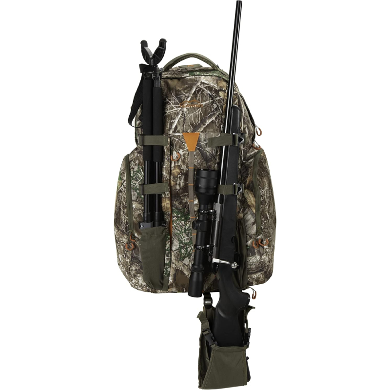 Lo zaino Crater Multi-Day Pack di Allen รจ l’ideale per il cacciatore appassionato. Dotato di un sistema integrato per il trasporto di fucile o arco e di un ampio scomparto principale, offre spazio a sufficienza per tutta l’attrezzatura da caccia essenziale. Gli spallacci imbottiti e i pannelli posteriori in rete garantiscono un trasporto confortevole, anche durante le lunghe giornate sul campo. Tutte le cerniere sono dotate di patte antipioggia, che proteggono efficacemente l’attrezzatura dalle intemperie.